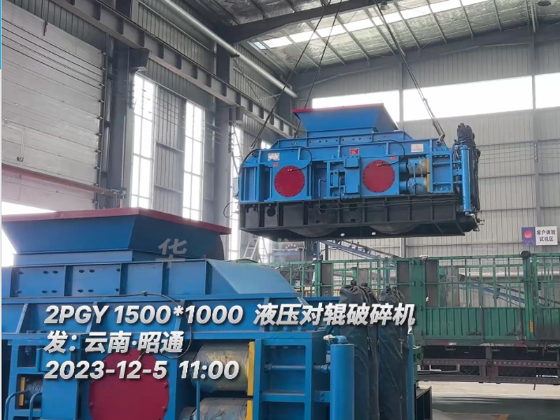 云南昭通客戶通過多方面的考察和比較,決定選擇華盛銘重工生產的1510型全液壓對輥制砂機作為投資項目。(附裝車發貨現場)